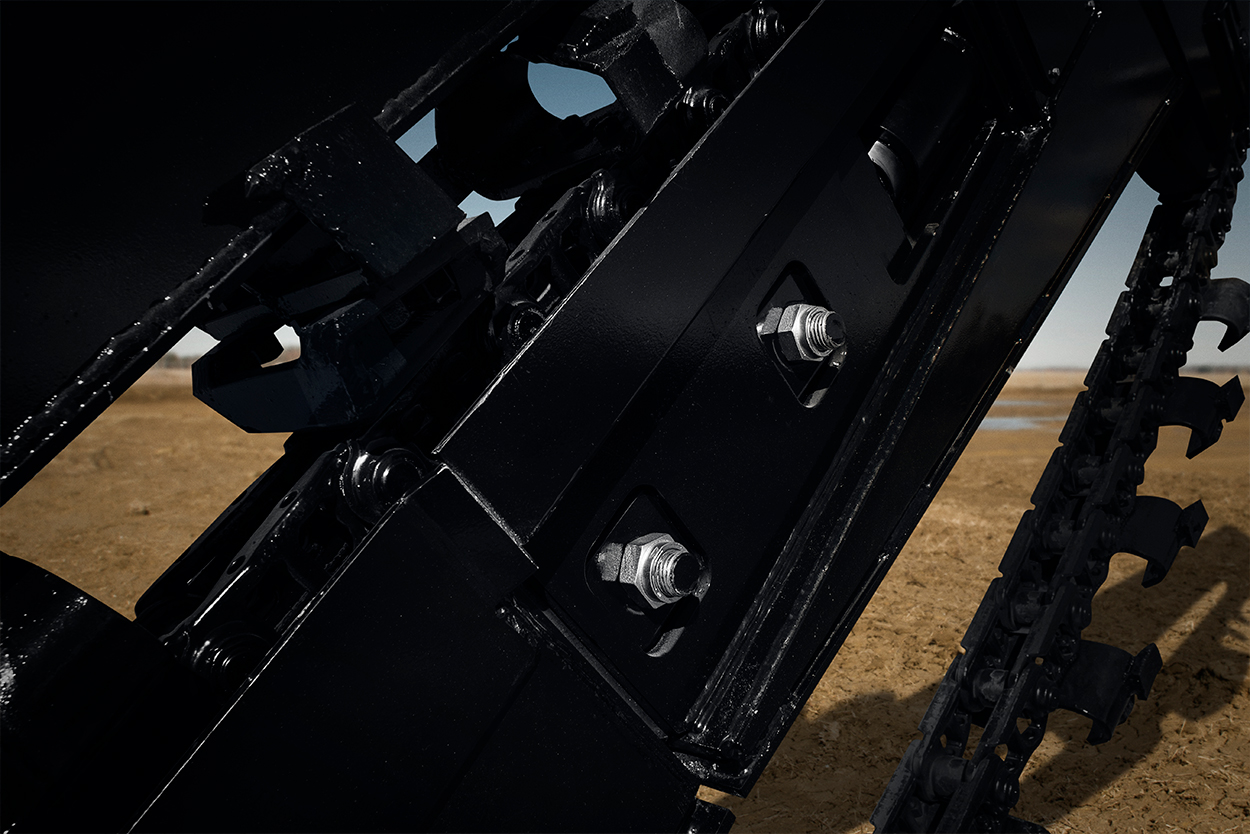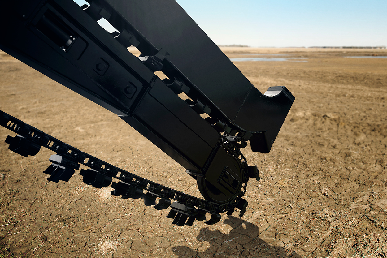 The Wolfe Dewatering Trencher features a chain with a maximum cut width of 12" [30cm] & depth of 19ft. [580cm]