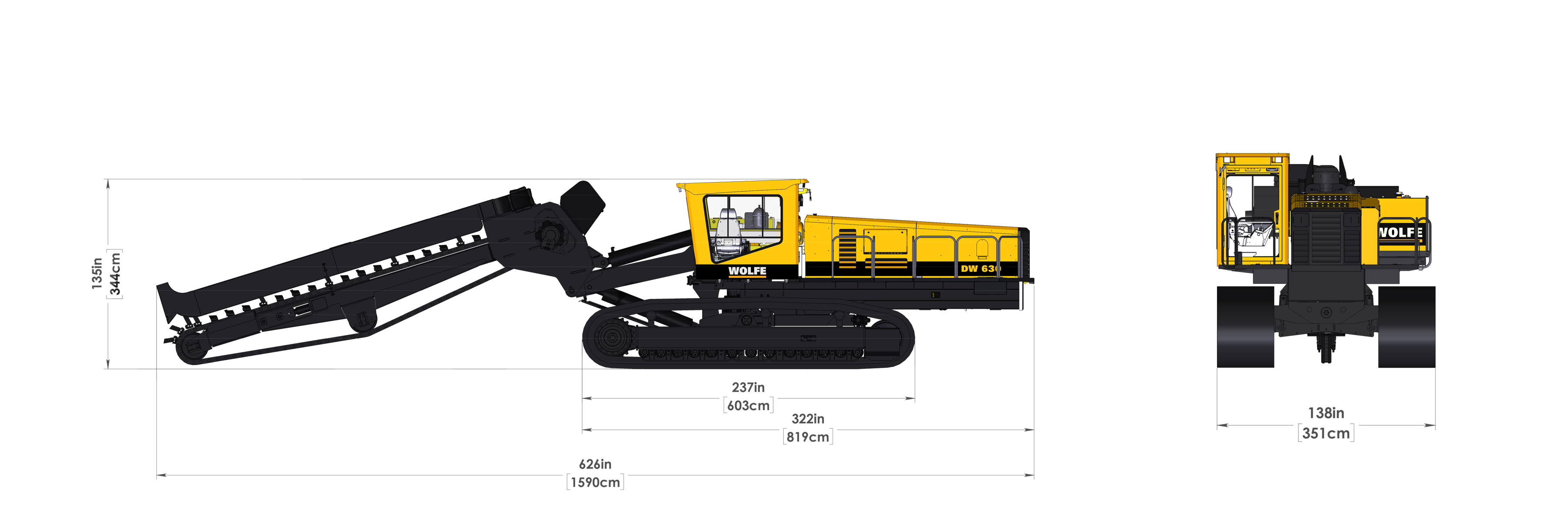 - The Wolfe Dewatering Trencher features a chain with a maximum cut width of 12" [30cm] & depth of 19ft. [580cm]