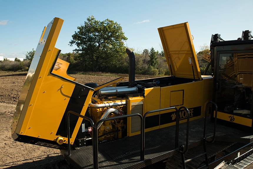The hoods are designed with extra clearance when open for easy maintenance access to the engine and hydraulics.